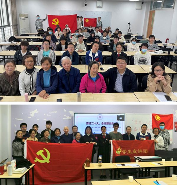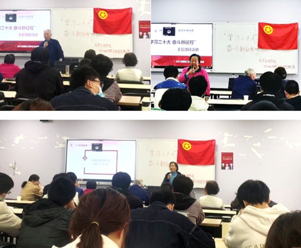 首先是“学生说”,邀请学院百川宣讲团高雨庆同学详细介绍了党的二十大的精神内涵;然后是“老师说”,由李德富老师由制药工程专业的发展历程与专业特色引入对“二十大”精神的感悟和阐释;最后是“党员说”,关工委的老党员李川娜老师、梁明征老师和傅运清老师以个人阅历层面分别给同学们分享他们学习“二十大”的心得感悟,从而增强同学们对于二十大精神内涵的理解与体会。