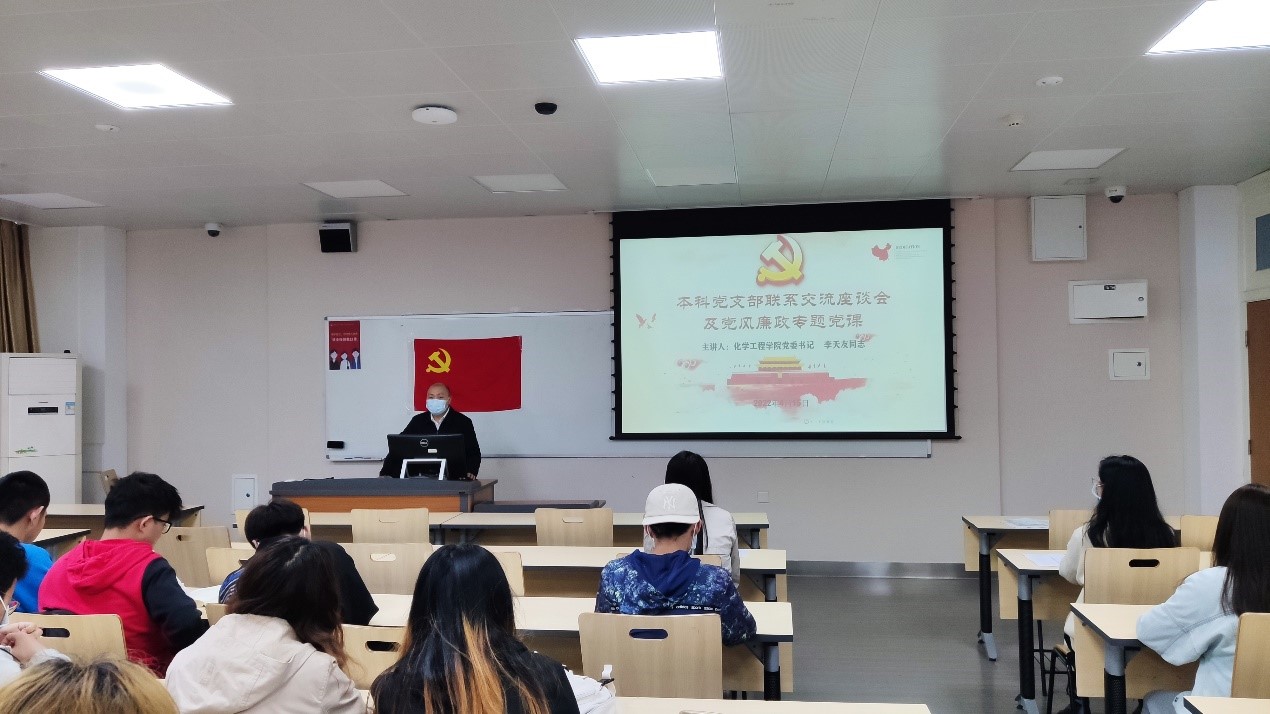 在江安校区第一教学楼A座101教室召开2018级、2019级本科党支部联系交流座谈会及党风廉政专题党课,李天友出席了座谈会并主讲了党风廉政专题党课。2019级本科党支部书记司振兵、2018级本科党支部书记李忆雯及党支部全体党员同志参加了活动。活动由司振兵同志主持。