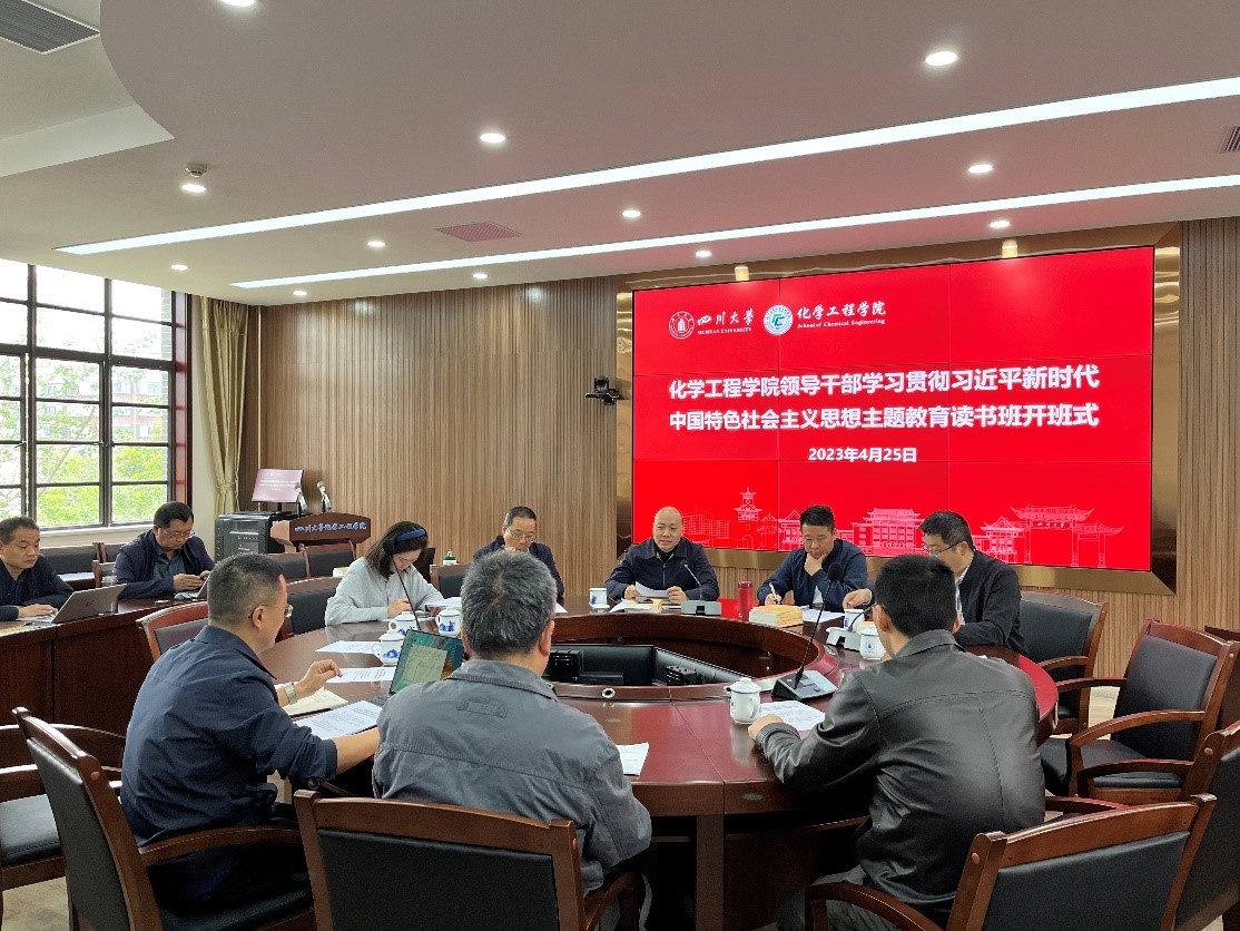 领导干部学习贯彻习近平新时代中国特色社会主义思想主题教育读书班开班式在望江校区化工学院312会议室举行。学院党委书记李天友、院长郭孝东等全体院领导,学院两委委员,全体科级干部和党支部书记代表等参加。