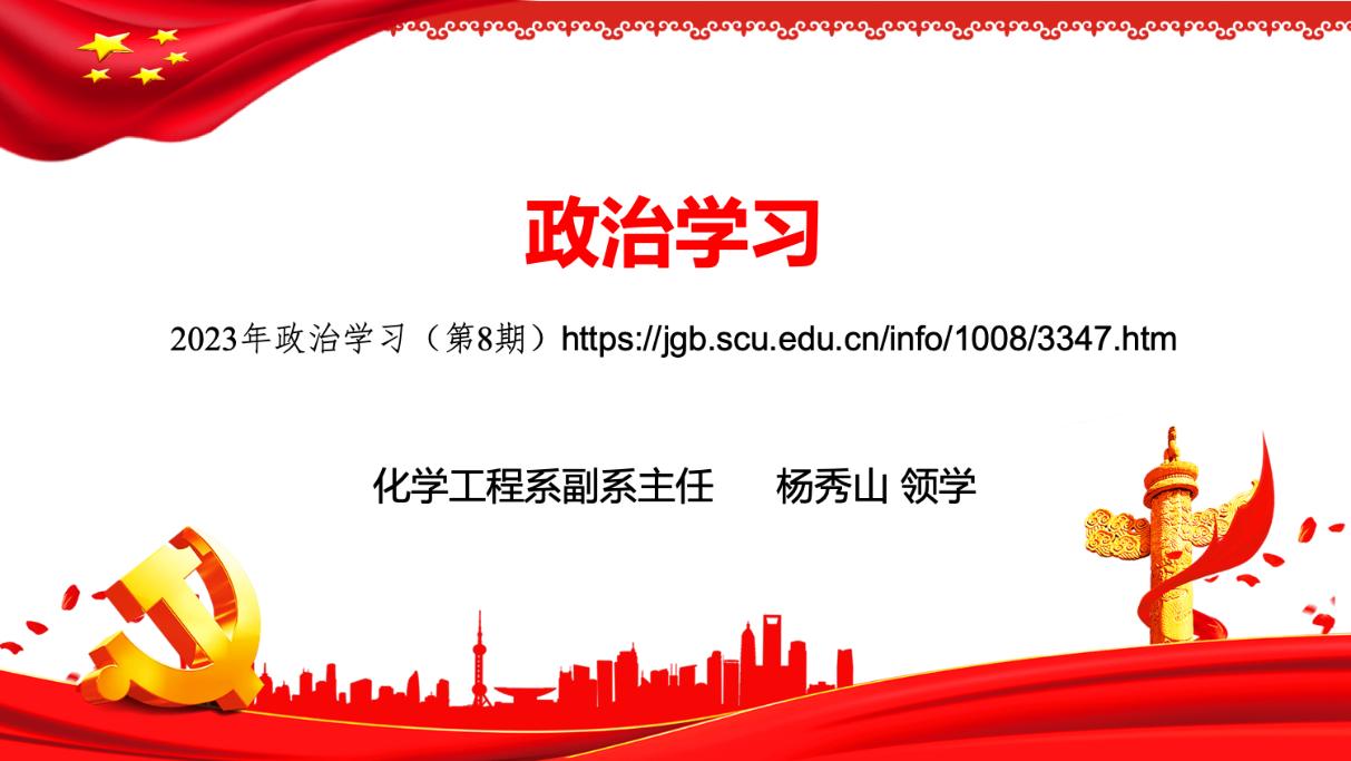 化学工程系线上开展了2023年度第8期政治学习和党员组织生活。政治学习由化学工程系党支部书记谢锐同志主持,化工系副主任杨秀山同志领学。谢锐同志主讲《习近平同志“在学习贯彻习近平新时代中国特色社会主义思想主题教育工作会议上的讲话”》的主题教育微党课。