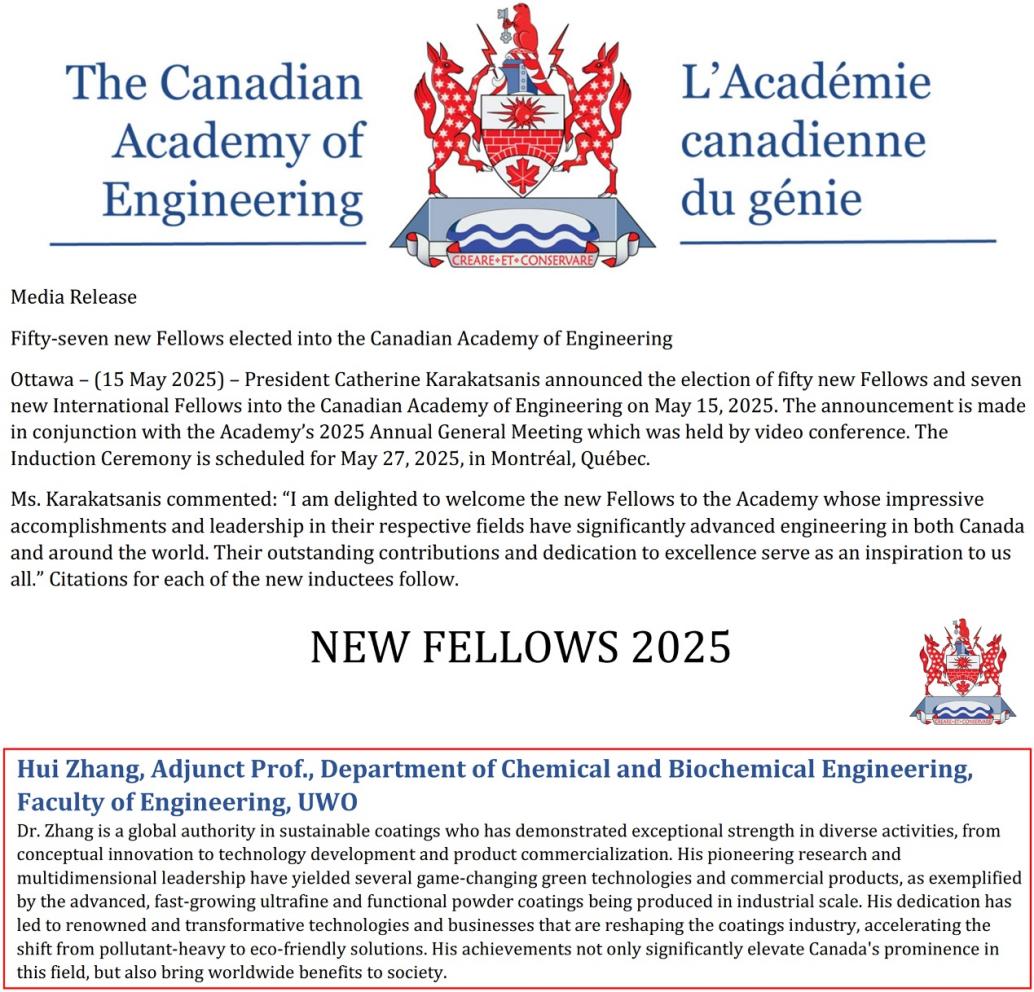 当地时间2025年5月15日,加拿大工程院(The Canadian Academy of Engineering)2025年院士增选结果正式揭晓,此次共增选50名新院士和7名外籍院士。NT动漫