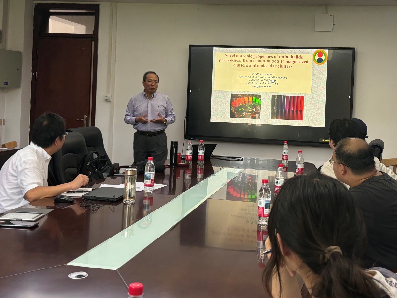 2025年7月28日下午,加州大学圣克鲁斯分校杰出教授、Journal of Physical Chemistry Letters行政编辑和ACS Physical Chemistry Au高级编辑张金中先生应邀做客“化工学术大讲堂”系列讲座,并在NT动漫 235报告厅作了“Novel properties of metal halide perovskites: from quantum dots to magic sized clusters and molecular clusters”为题的精彩学术报告,还分享了科技论文的撰写与评审经验及建议。此次讲座由化工学院王贵欣教授主持,来自化工学院、材料学院和物理学院等相关学院师生聆听了本次学术报告。